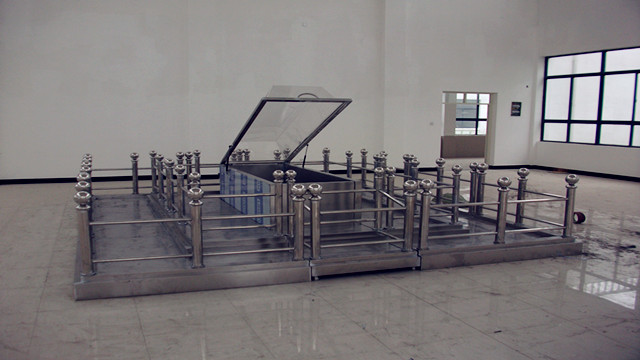 優(yōu)質不銹鋼雙層圍欄,內設不銹鋼平臺,綠色草坪,特制液壓升降式透明高罩